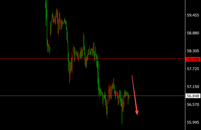 操作建议:57.3--57.6一线做空,目标看56--55附近